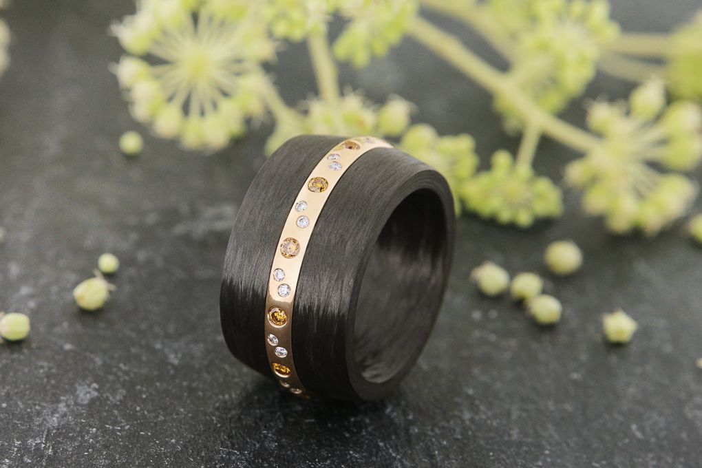 Damenring Roségold-Karbon, Breite 14.0mm, mit 37 Brillanten 0.58ct TW vs